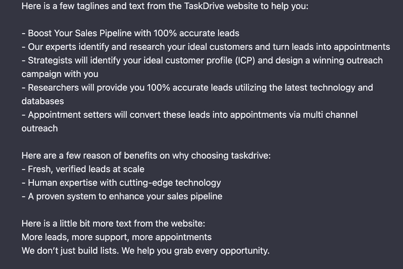 Now, once you have a draft, you can feed ChatGPT examples of copy from your company’s website to hone your messaging and make it relevant and on target to your customer.