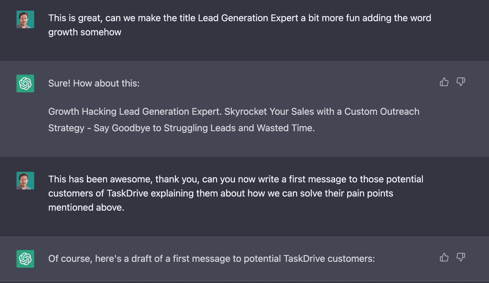 For example, start with your introduction, where you mention your customer’s pain point. Go back and forth with ChatGPT until you have something you like. It doesn’t have to be perfect, as you most likely still need to do some final edits yourself to make it your own.