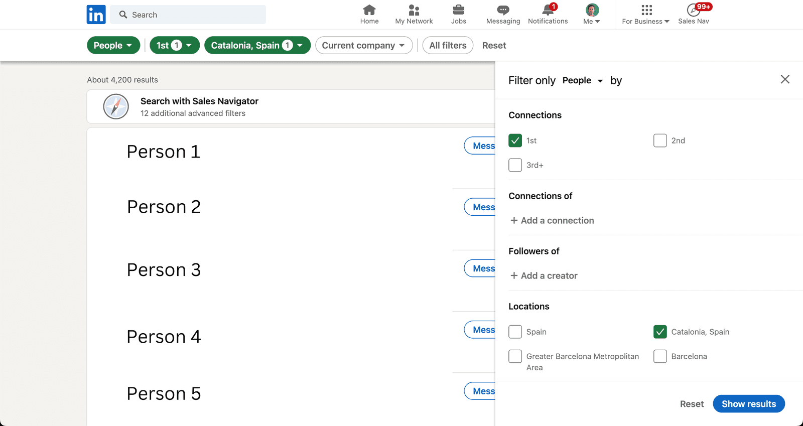 Then, choose 1st-degree connections and add other filters related to your event, like location or job title.