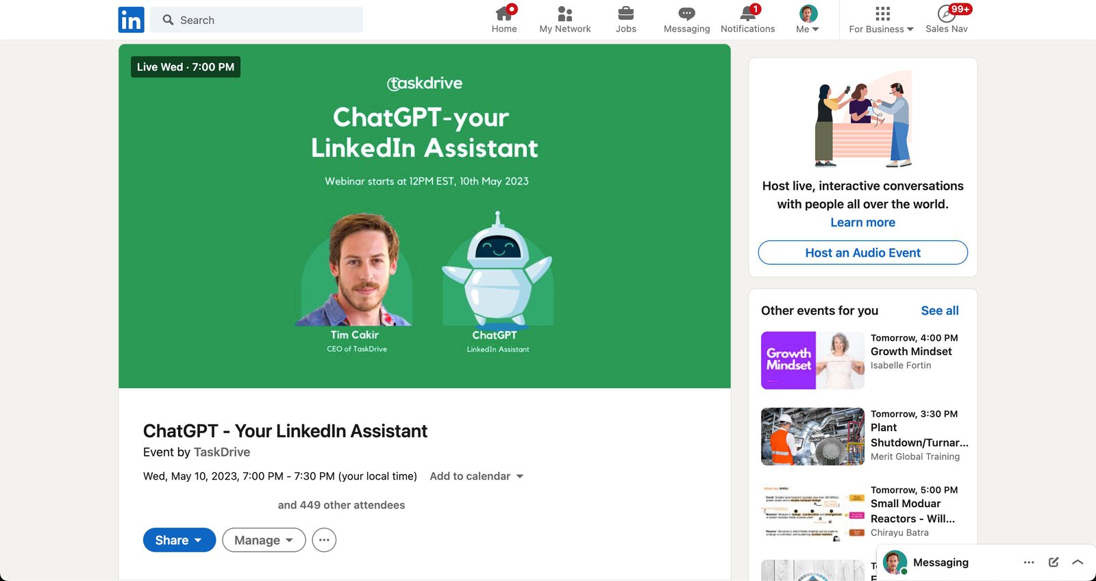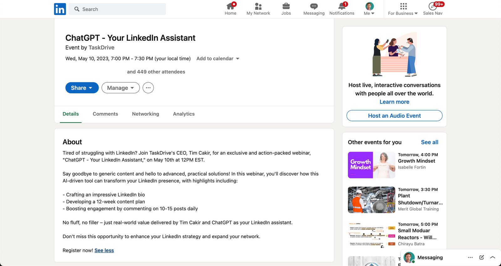Of course, if you’re inviting people to attend an event, you should also make sure your profile stands out. To improve your profile, check out my guide to perfecting your LinkedIn bio with the help of ChatGPT.