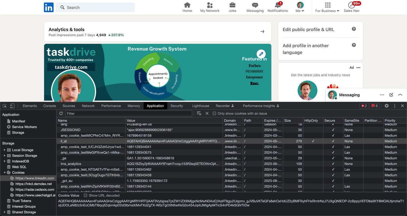 Q: What is a LinkedIn session cookie, and how do I find it?