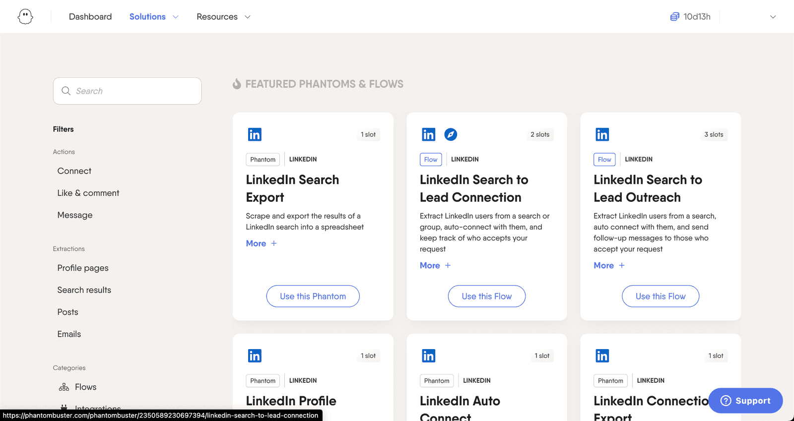 Go to the “Solutions” dropdown and the“Phantoms” tab, then find the "LinkedIn Event Inviter."
